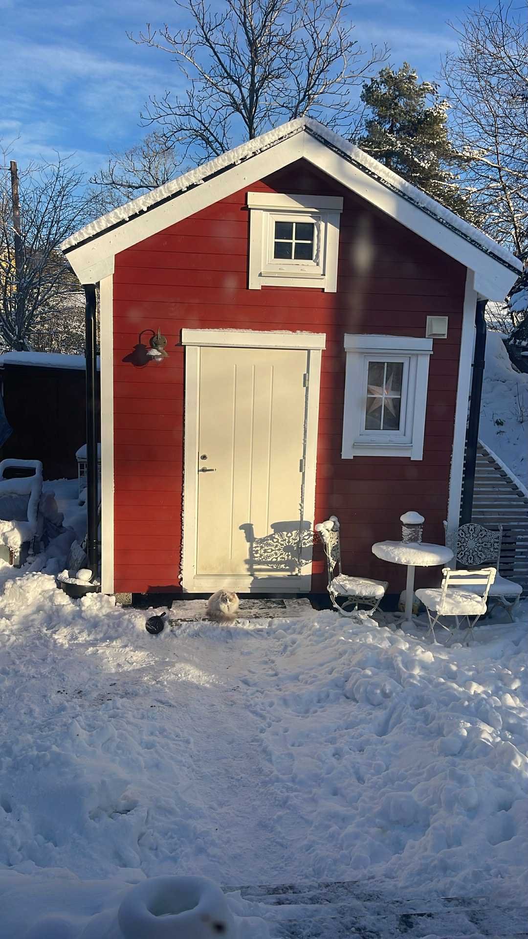 Fräsch liten bostad uthyres på lugn gata i Björknäs, Nacka. Nära till affär och buss (5 min) och stan (15 min), samt till natur och bad. 18 kvm inkl loft. Lämpligt för 1-2 pers. Ej rökare. Ej allergiker. Tillgång till uteplats och egen tomtbit. P m vid intresse. El, vatten och wifi ingår. OBS! Du/ni delar bostaden med två snälla katter - som vi betalar alla kostnader för!