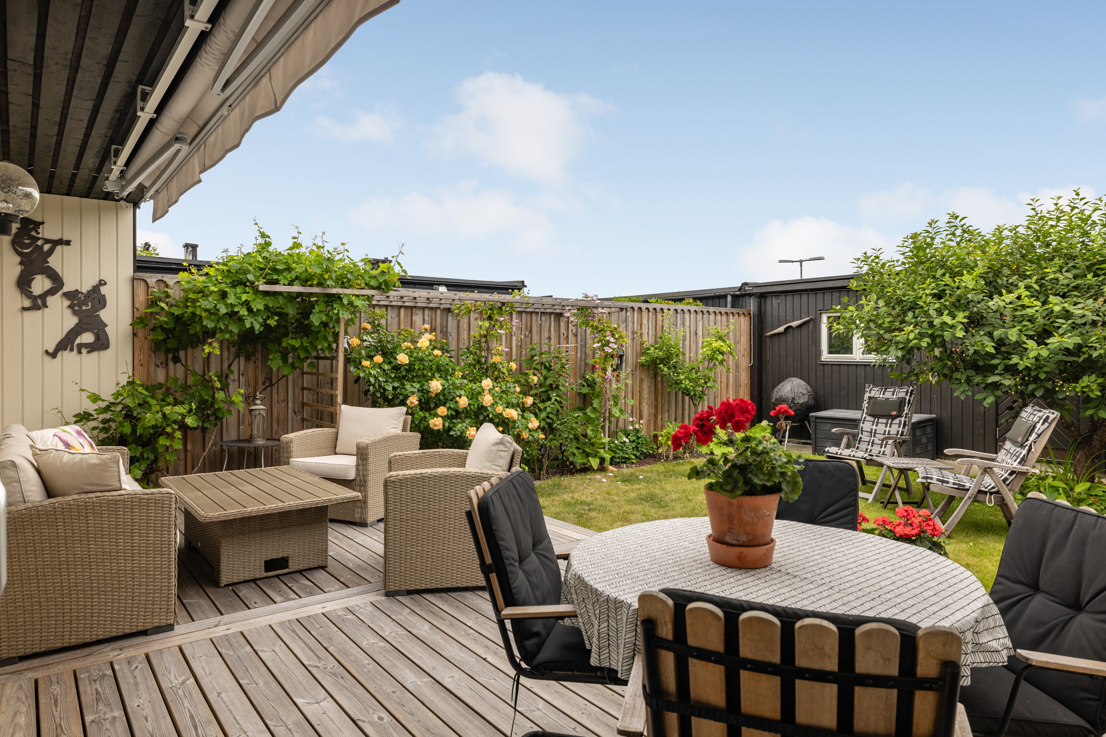 Lugnt bilfritt område. Liten insynsskyddad atriumgård med förråd. Garage med elladdare och parkeringsplats. Nära naturen och havet. Fina lekområden samt stor lekpark för barn. Närhet till buss med täta turer, ca 20 minuter till Slussen. Saltsjöbanan åter i drift. Planlösning se bild.