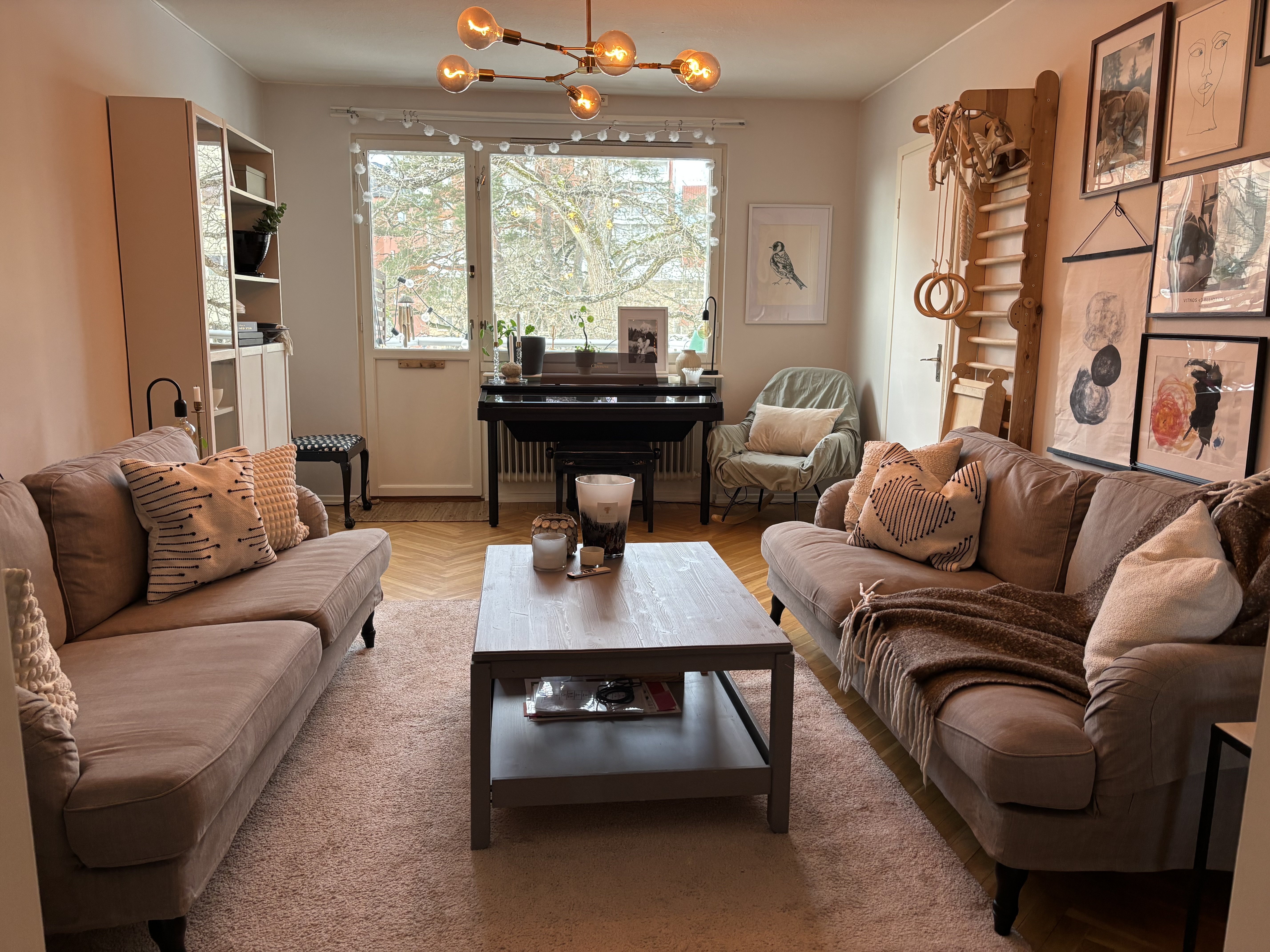 ***Lease pending*** Charming 4-Room Apartment in Peaceful Nacka – Fully Furnished & Long-Term Rental Possible Welcome to Helgesons Väg 3, nestled in a quiet and up-and-coming part of beautiful Nacka. The neighborhood is calm and friendly, with kind neighbors and lovely green views. From the balcony, you can enjoy the sight of majestic oak trees, while the kitchen window features an expansive sky view with a preschool and Nacka churchyard below. This bright and airy apartment gets plenty of natural light—morning sun fills the kitchen and one bedroom, while the living room and smallest bedroom catch the afternoon glow. The master bedroom stays cool in the summer and warm in the winter, making it comfortable year-round. The entire apartment was freshly painted in 2025. There's no shortage of storage: a large hallway closet, two roomy closets in the master bedroom, and another smaller one in the second-largest bedroom. The living room has classic parquet flooring, while the rest of the apartment features durable linoleum. There is a small, private storage room in the basement, empty and free to use. There is a bicycle room adjacent to the in-building recycling area and an easily accessible stroller room. The kitchen is well-equipped with two tall fridge/freezer units (perfect for families) and a midsize dishwasher. While there are no in-unit laundry machines, the shared laundry room has large machines and it’s usually easy to book a time when needed. The apartment is fully furnished, but we’re open to discussing removal of specific items if needed. We're relocating abroad for the foreseeable future, so you’ll likely have the opportunity to stay here for many years as the area continues to grow and develop with more amenities, entertainment, and beautiful spaces. No smoking.