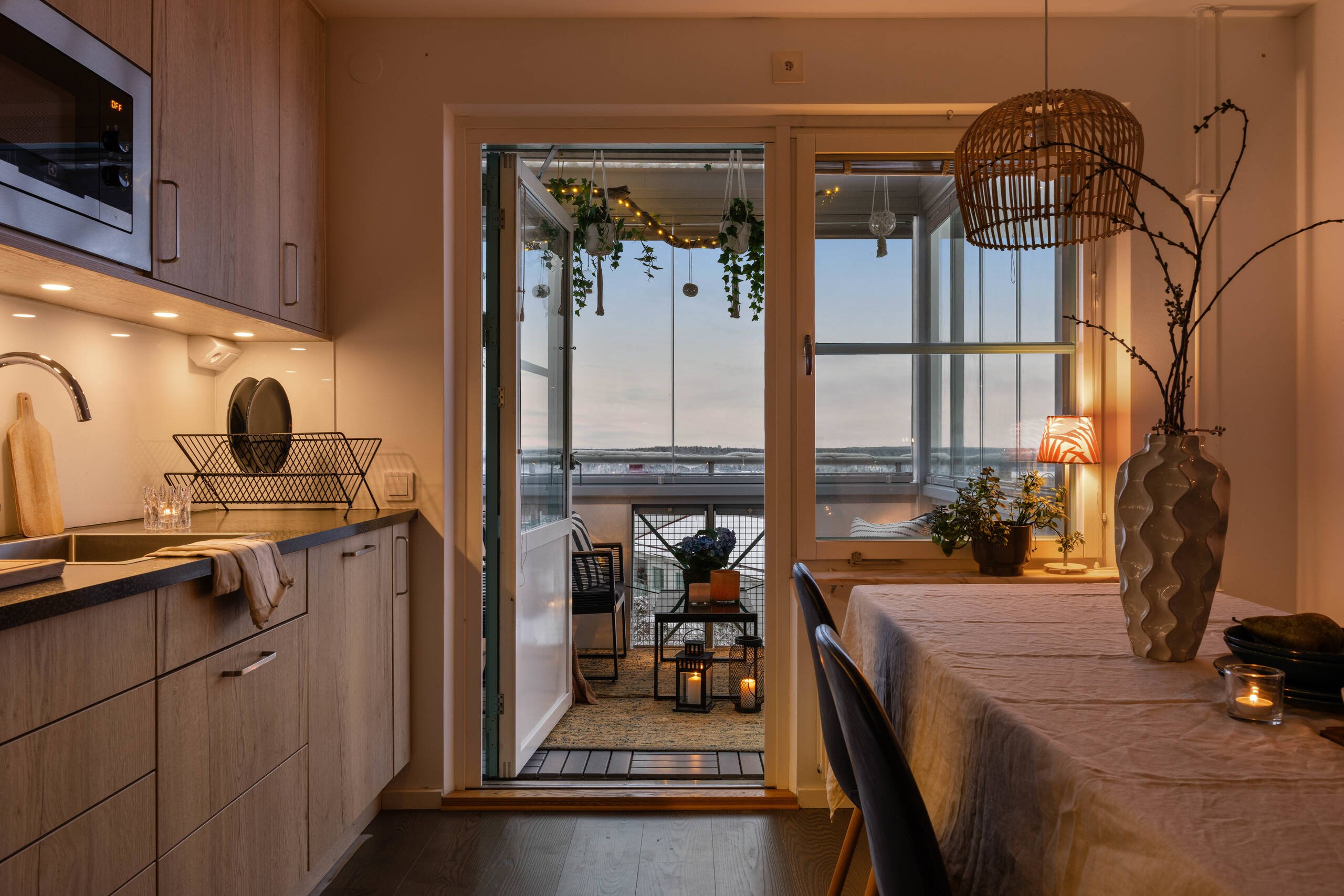 Swedish: Vi hyr ut vår trevliga lägenhet i Jarlaberg på Diligensvägen under sommaren. Minsta hyresperiod är 4 veckor. Lägenheten är tillgänglig från slutet av april (från lördag den 25 april) till slutet av juli (till lördag den 25 juli). Det är en 3-rumslägenhet på 72 kvadratmeter med inglasad balkong, perfekt för ett par eller en liten familj. Huset har fem våningar och vår lägenhet ligger på fjärde våningen, vilket ger ett fantastiskt ljusinsläpp. Balkongen och köket ligger perfekt för morgonsol och fina soluppgångar (se bild), och de stora fönstren i vardagsrummet ger utsikt över Jarlaberg och bort mot Lidingö (se bilder). Lägenheten har två sovrum. Det ena är ett större sovrum med gott om förvaring, och det andra är något mindre – perfekt som hemmakontor eller barnrum. Det finns även bra förvaringsmöjligheter i resten av lägenheten, bland annat i hallen (se bilder), där det finns sex separata skåp bakom och bredvid speglarna. Köket och matplatsen är rymliga och utrustade med induktionshäll, fullstor kyl och frys, inbyggd ugn och mikrovågsugn samt diskmaskin. Det stora badrummet har golvvärme, tvättmaskin, handdukstork och dusch. Det finns också en tvättstuga för större tvättar. På gården finns även bastu, barnvagnsrum och cykelrum. Jarlaberg har smidiga kommunikationer till Slussen med buss från Jarlabergs busshållplats på cirka 10–15 minuter, eller med båt från Nacka Strand. Här bor man också nära naturen i naturreservatet Nyckelviken. ICA Maxi ligger dessutom mycket nära. Det här är ett idealiskt område för barnfamiljer, med flera lekplatser på gårdarna i Jarlaberg och nära till shopping i Nacka Forum. I hyran ingår bredband, el och vatten. English: We are renting out our apartment in Jarlaberg on Diligensvägen during the summer. Minimum rental period is 4 weeks. The apartment is available from late April (from Saturday 25 April) until late July (Saturday 25 July). It is a 3-room apartment of 72 sqm with a glass-enclosed balcony, ideal for a couple or a small family. The apartment is on the 4th floor of a 5-floor building, giving it excellent natural light. The balcony and kitchen are perfect for morning sun and sunrise views, while the living room windows look out over Jarlaberg towards Lidingö. There are two bedrooms: one larger bedroom with good storage, and one slightly smaller room suitable as a child’s room or home office. There is also plenty of additional storage in the hallway. The kitchen and dining area are spacious and include an induction hob, full-size fridge and freezer, built-in oven and microwave, and dishwasher. The bathroom has underfloor heating, washing machine, heated towel rail, and shower. There is also access to a laundry room for larger loads. In the shared area there is also a sauna, stroller room, and bike room. Jarlaberg offers easy access to Slussen by bus or boat from Nacka Strand. Rent includes broadband, electricity, and water.