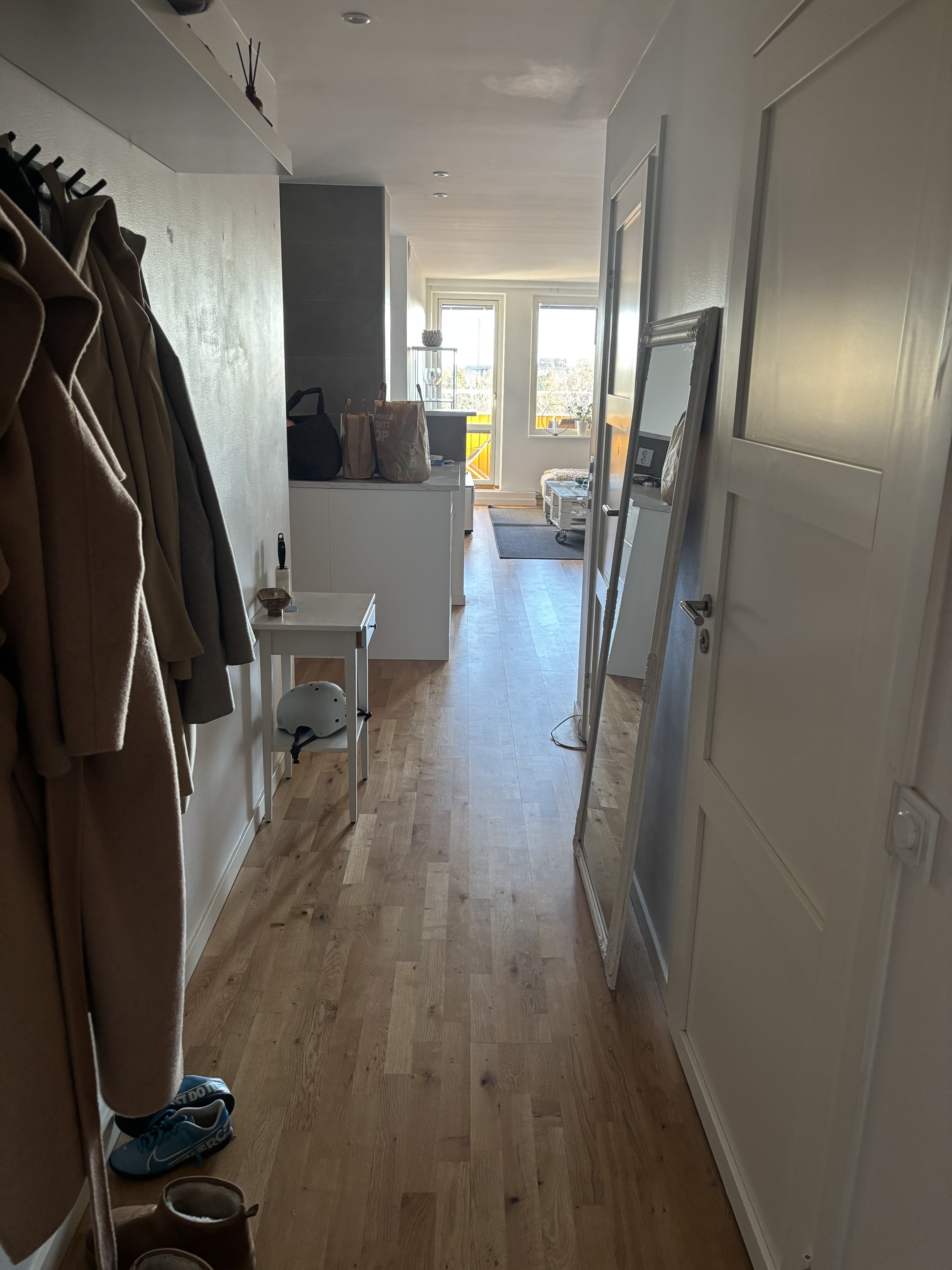 En trea som är ombyggd till en fyra med tre sovrum, varav det ena används som gästrum. Trevligt och socialt kök med öppen planlösning mellan kök, matplats och vardagsrum. Allt i insynsskyddat läge med balkong i söder med sol i princip hela dagen. Stort matbord med plats för 6-8 personer. Helkaklat badrum med tvättmaskin och badkar. Finns trådlöst internet och tv (tyvärr ganska gammal, men stor) Hyrs endast ut denna korta period då jag kommer att vara borta. Datumen kan komma att ändras. Lägger ut bilder snarast