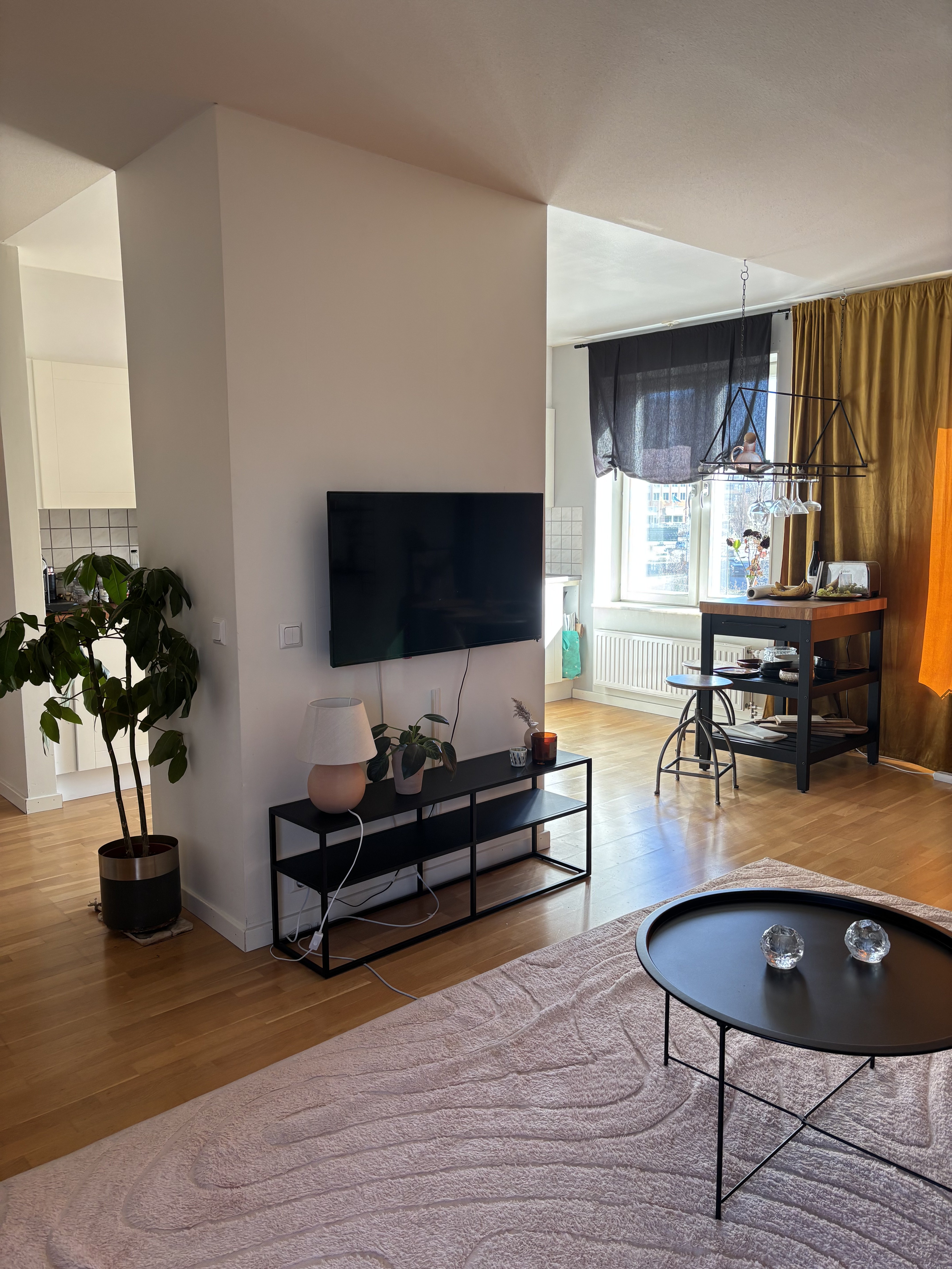 Ljus och fräsch tvåa med öppen planlösning mellan vardagsrum och kök. Balkong mot innergård med eftermiddagssol. Uthyres fullt möblerad över sommaren.